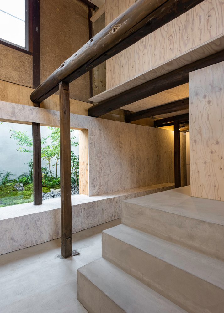 内部は柱梁及び階段はそのままに、奥の棟の2階部分ごとすべて解体し、構造が露出したがらんどうの中に大小様々なヴォリュームを配置して空間を再構成した。まずプランの中央には3つの台形型ヴォリュームを配置し、その表側の壁面には店のブランドイメージである水玉パターンと虎のネオン看板を設置し、人々を店内へと誘導する。また、様々なヴォリュームは既存建物の軸から少しずらし、ヴォリュームの配置とそのずれ、そして対角線上に位置する2つの庭により連続的に変化する景色を生み出している。
